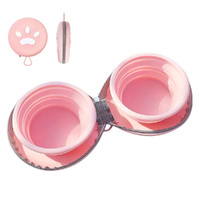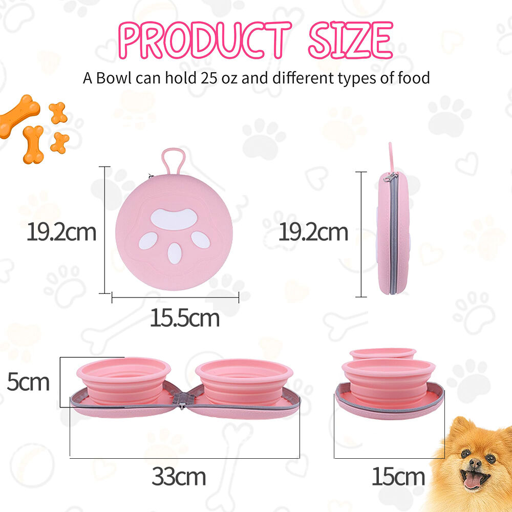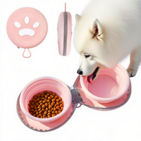 Collapsible Dog Foldable Bowl 2-In-1 Travel Double Pet Bowl Water Food Feeder Cat Feeding Bowl-Pink