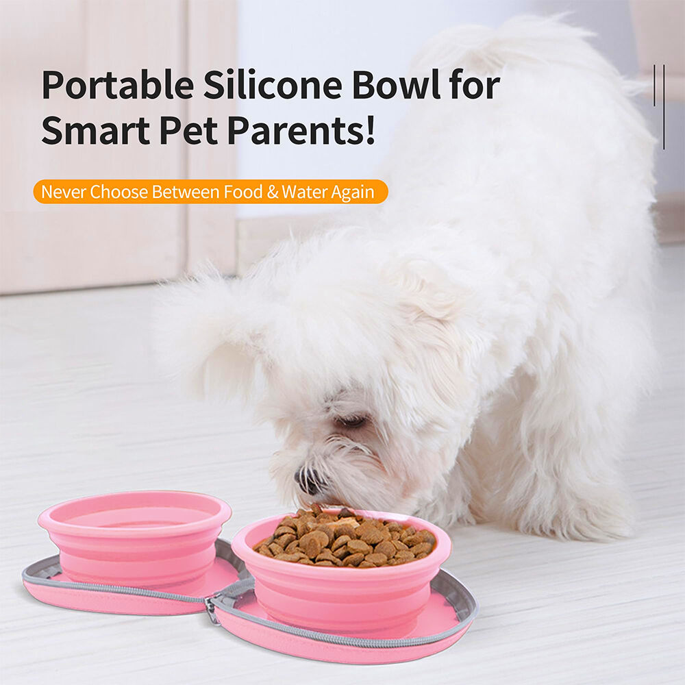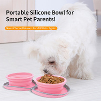Collapsible Dog Foldable Bowl 2-In-1 Portable Travel Double Pet Bowl Water Food Feeder Cat Feeding Bowl