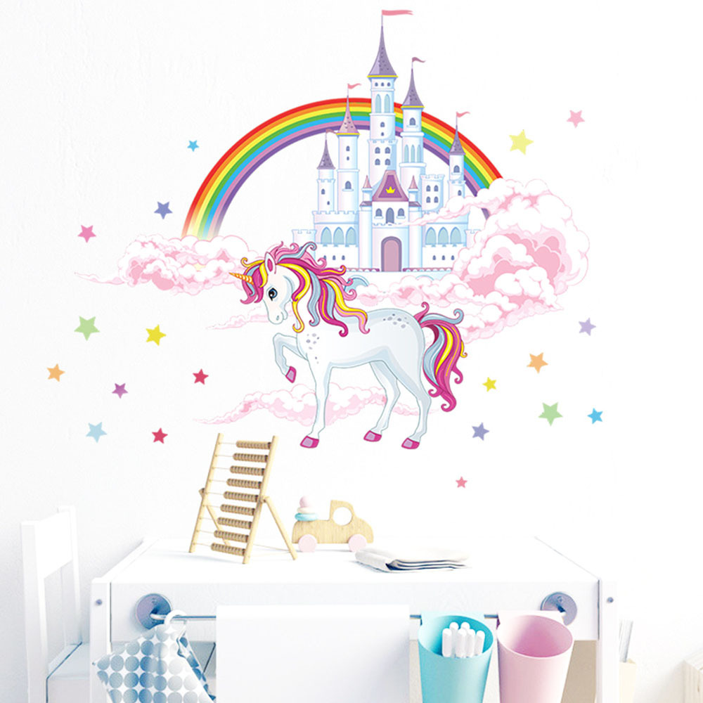 Colorful Unicorn Castle Stars Rainbow Clouds Wall Stickers DIY Decorations
