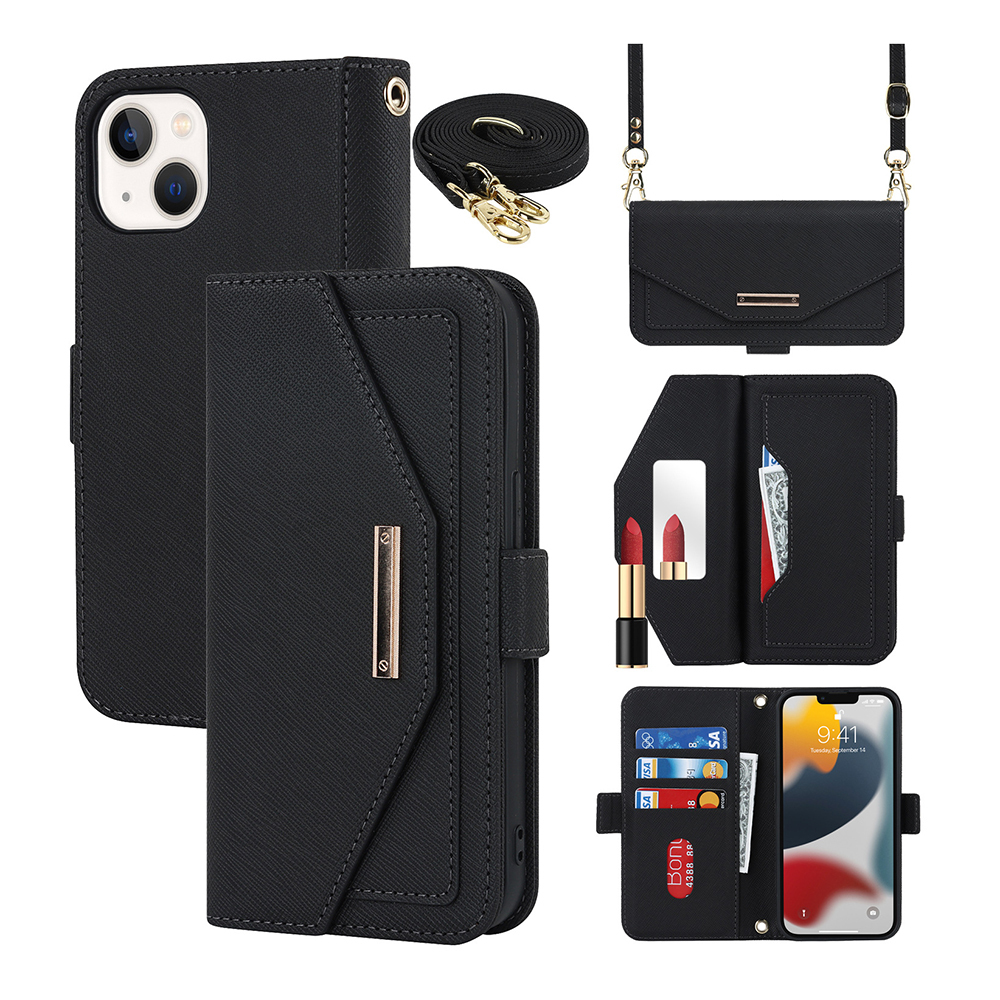 Crossbody Phone Case Wallet PU Leather Flip Closure Wrist Holder iPhone Cases