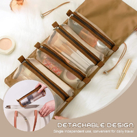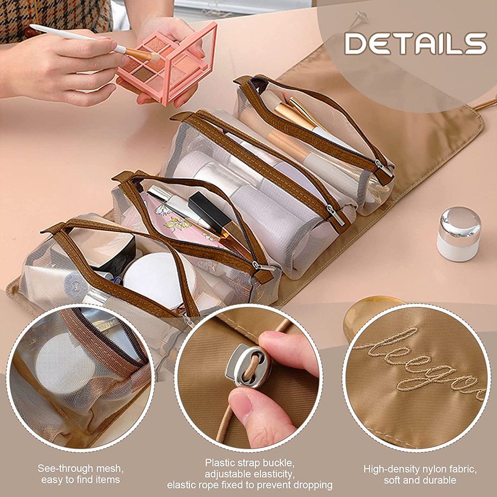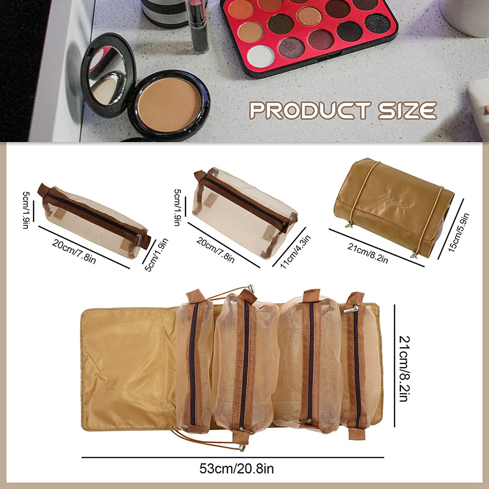 Detachable Cosmetic Bag 4 in 1 Portable Mesh Makeup Bag Hanging Roll Up Travel Toiletry Bag
