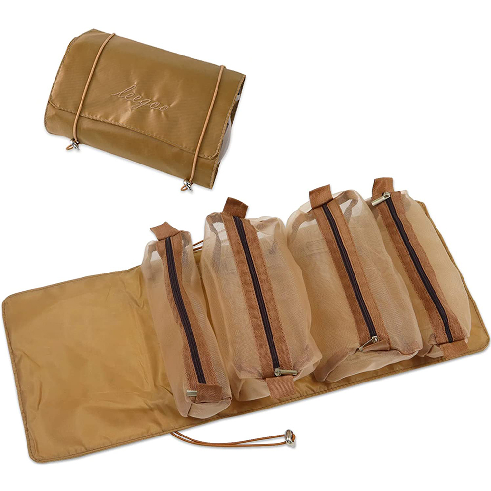 Detachable Cosmetic Bag 4 in 1 Portable Mesh Makeup Bag Hanging Toiletry Bag-Brown