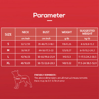 • S Bust: 39-46cm Neck: 32cm Suggested Weight 4-6 kg,