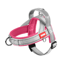 Instead of step-in way, this halter harness is easy stress free put on through dog’s head. The only 1 snap buckle on the tummy part make the applying and removing in seconds. Very light weight material adopted, even the back metal D ring, make small dogs feel ease when walking.
