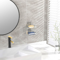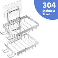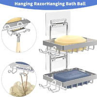 Double Bar Soap Holder For Shower Wall With 4 Hooks Stainless Steel Adhesive Bathroom Soap Dish
