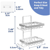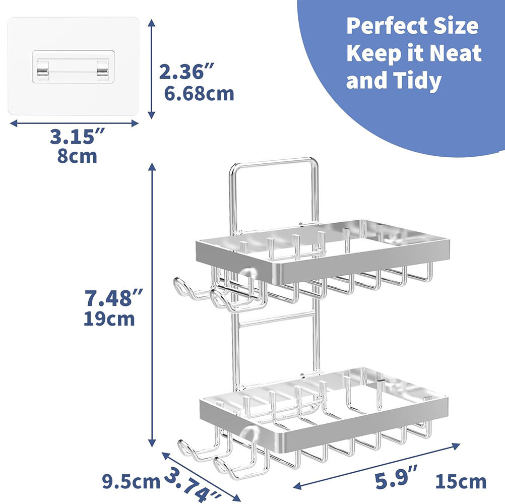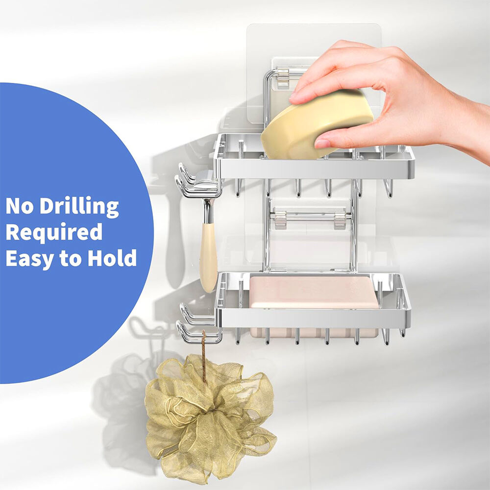 Double Bar Soap Holder For Shower Wall With 4 Hooks Stainless Steel Adhesive Bathroom Soap Dish-Silver