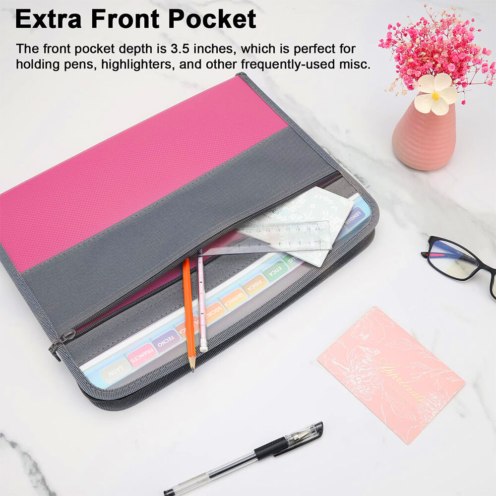 • Adhesive Labels & Extra Front Pocket:for better organization and subdivision, we offer colorful labels as gift in each set, which can help you mark different files efficiently. The front pocket depth is 3.5 inches, which is perfect for holding pens, highlighters, and other frequently-used misc.