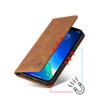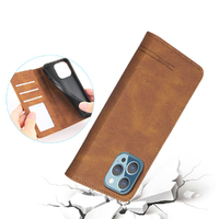 Genuine Leather Case with Credit Card Slots for iPhone 13-Brown