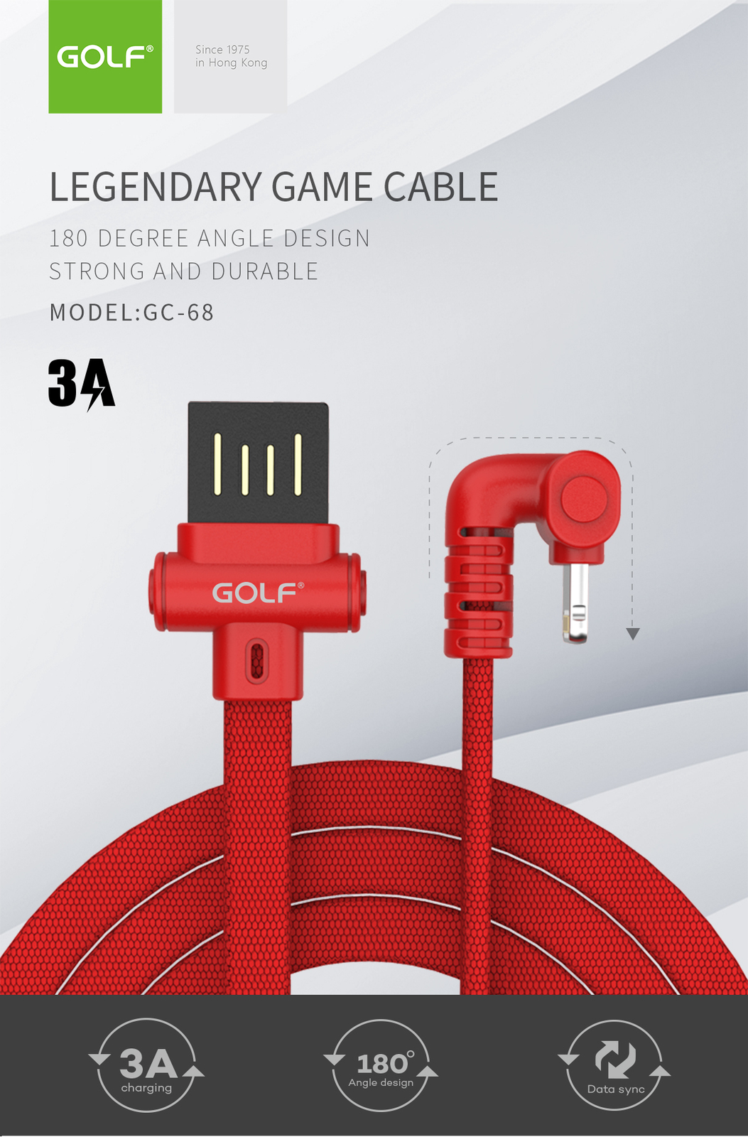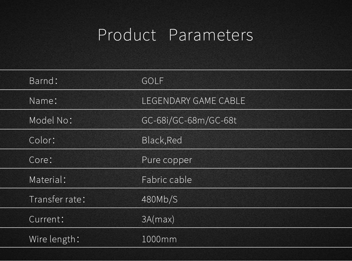 Golf GC-68C USB 1m 3A Fast Charging U Shape Type-C Gaming Cable