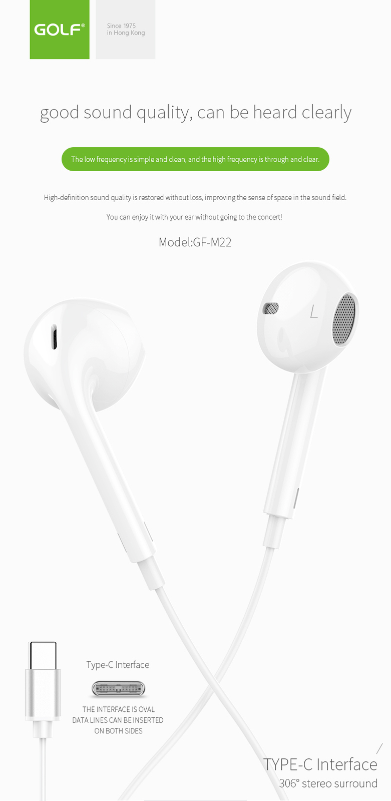 Golf GF-M22 Wired Earphones Type-C Acoustic with Microphone