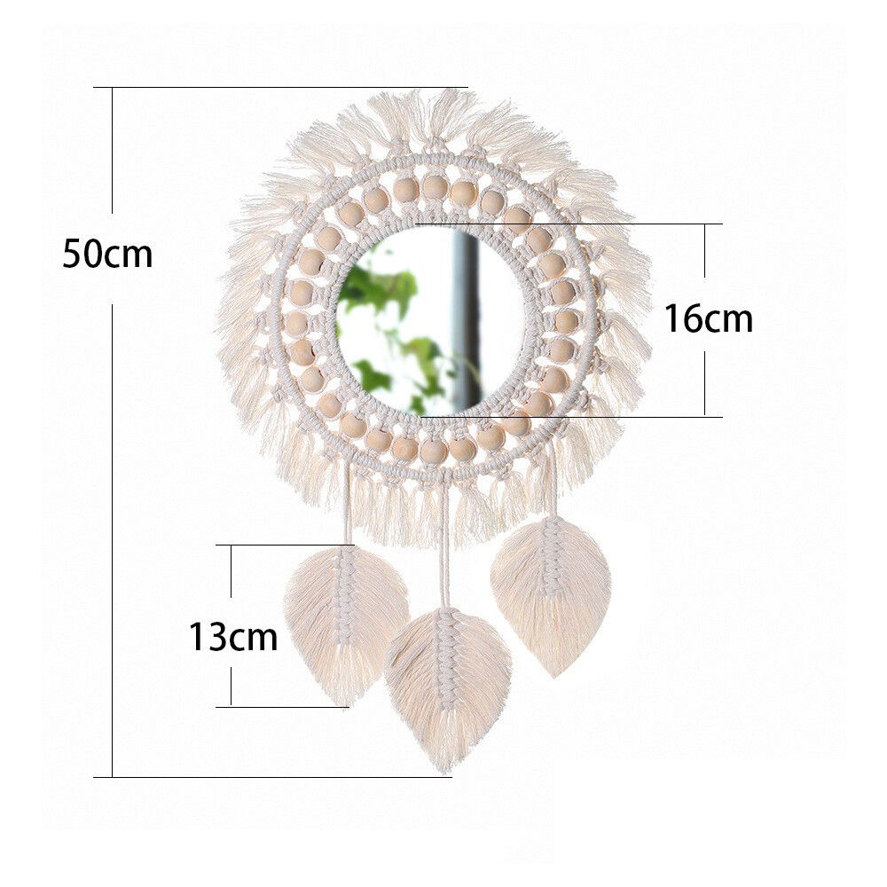 • High quality material:It's made of cotton,wood beads and mirror,sturdy£¬wear- resistant and eco- friendly, very delicate and practical.the mirror with sunburst shape woven. Exquisite weaving process design , elegant and chic.