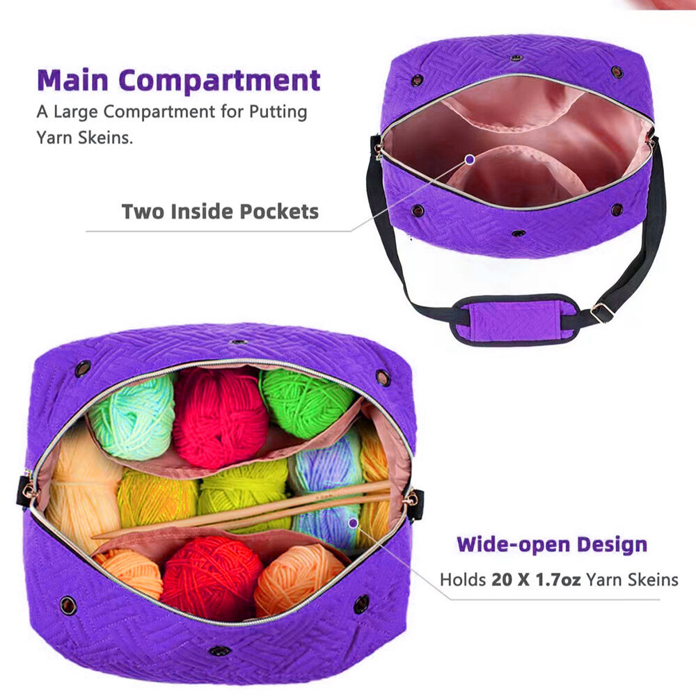 Knitting Bag Large Yarn Storage Bag Crochet Bag Yarn Storage Organizer Pack-Purple