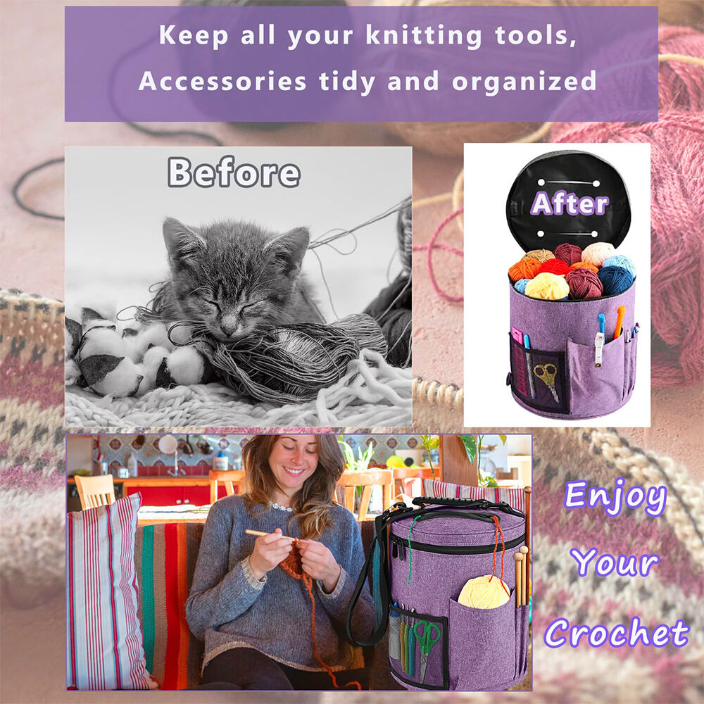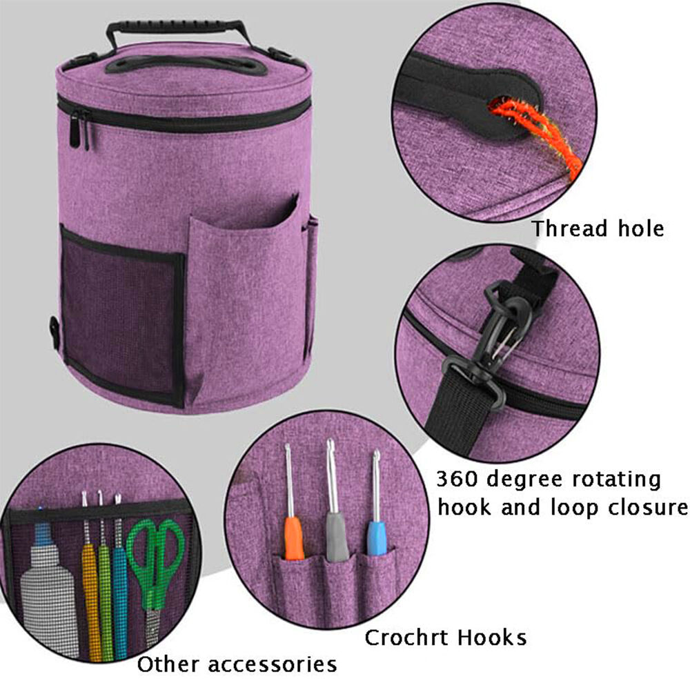 Knitting Bag Yarn Storage Durable Crochet Bag Organizer For Crochet Accessories-Purple
