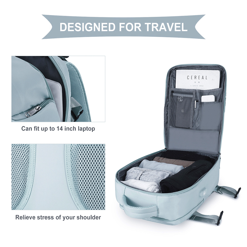 Large Casual Travel Backpack For Women Men Carry On Rucksack Flight Approved-Light Blue