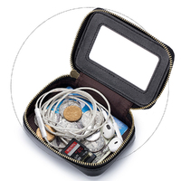 Leather Lipstick Bag Mini Portable Carry Mirror Makeup Small Bag Coin Purse