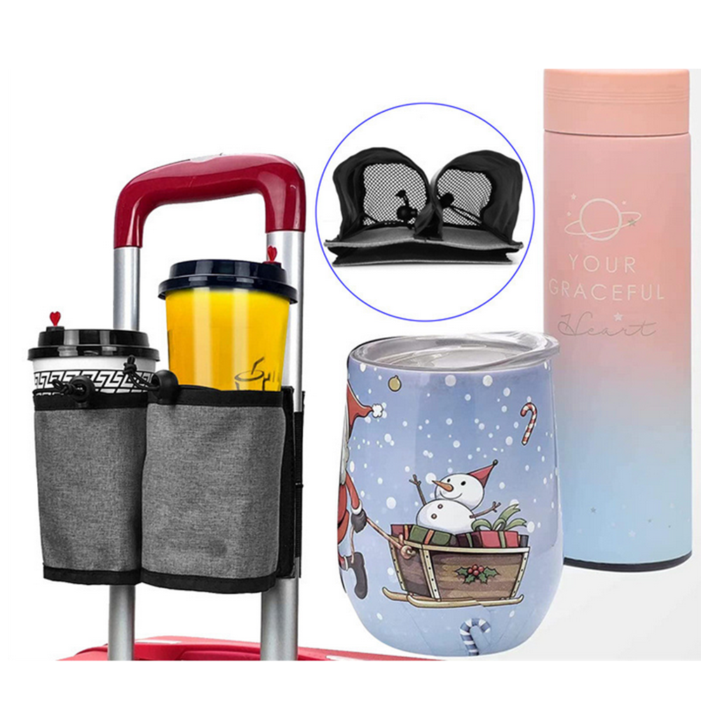• Easy to Use: Just slip our travel cup holder over your luggage handle and use it, the drawstring design keeps the cups in place and prevents them from slipping.