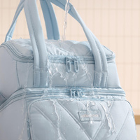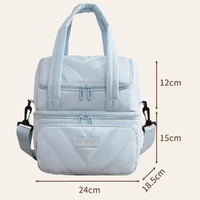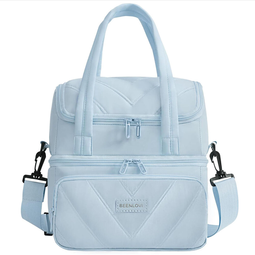 Lunch Bag for Women Insulated Double Deck Lunch Box Puffer Lunch Tote with Straps Leakproof-Blue