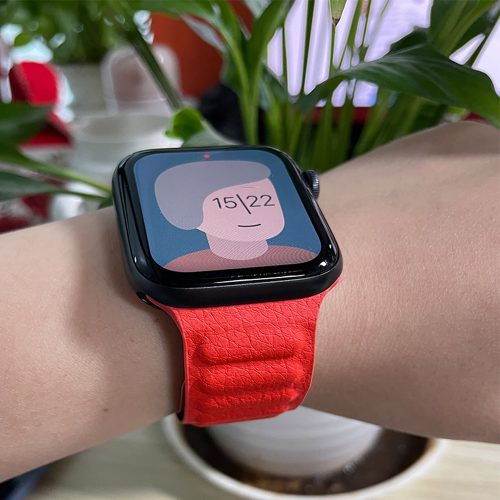 Magnetic Leather band for iWatch 38/40/41mm and Series SE/7/6/5/4/3/2/1-Red