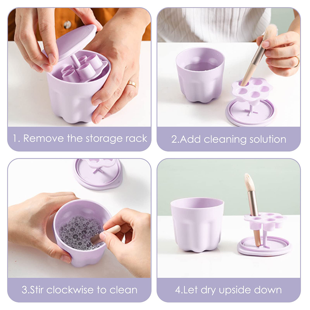 • 2 in 1 Design makeup brush cleaning bowl with holder can be used to dry or store the makeup brush. Keep dressing table tidy.