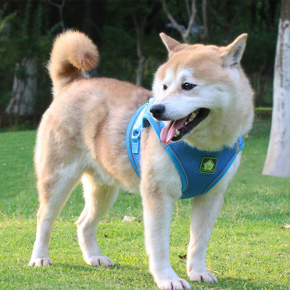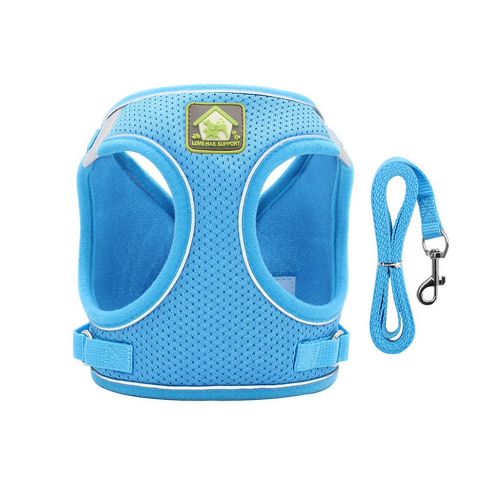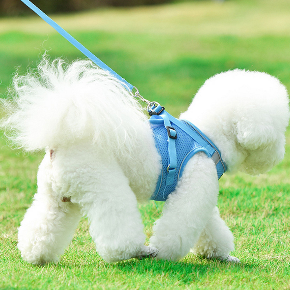 Mesh Puppy Vest Harness Reflective Adjustable Pet Harnesses set-S-Blue
