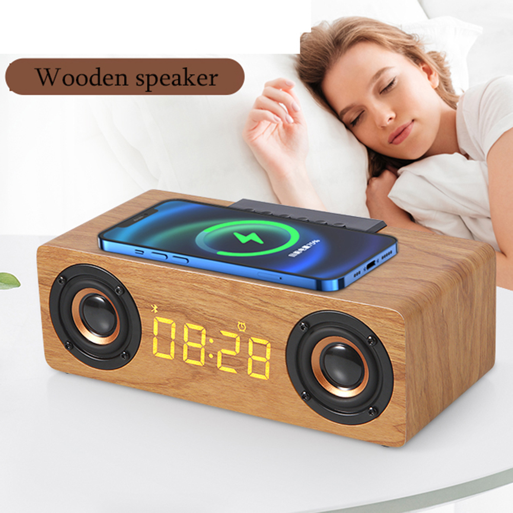 Multi-function Wooden Wireless Bluetooth Speaker LED Alarm Clock