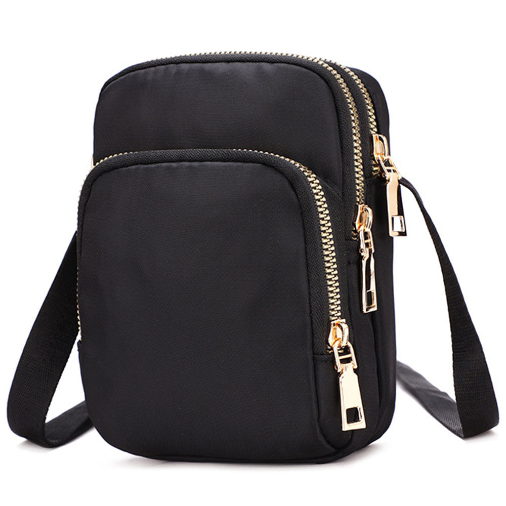 Multi Zipper Mini Cell Phone Purse Pouch Crossbody Shoulder phone Bags-Black