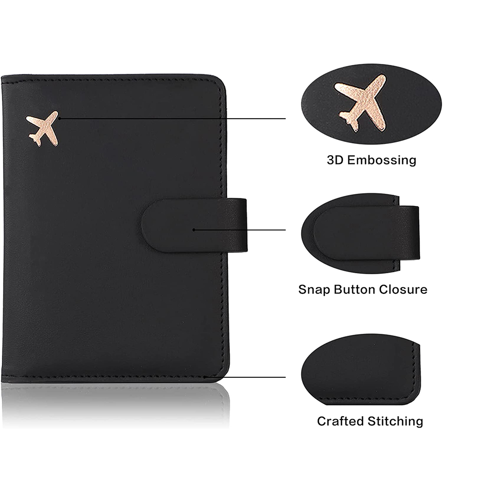 Passport Cover PU Leather Man Women Travel Passport Holder Credit Card Case-Black
