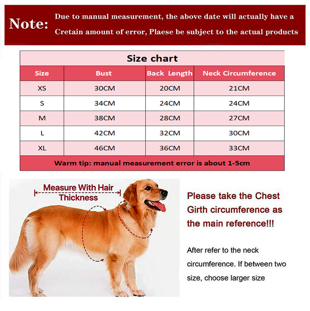 • XL: Chest Girth 46cm, Back Length 36cm, Neck Girth 33cm