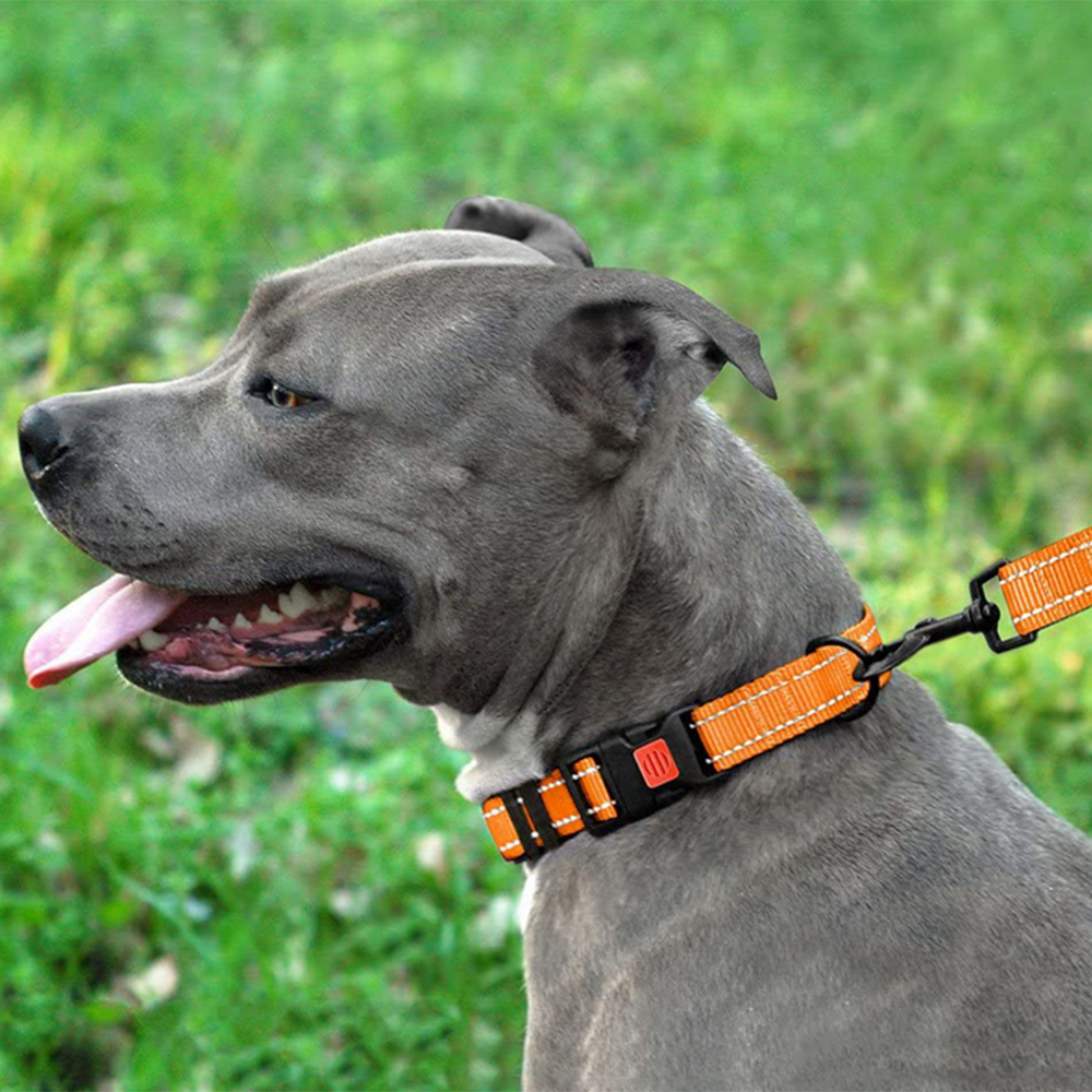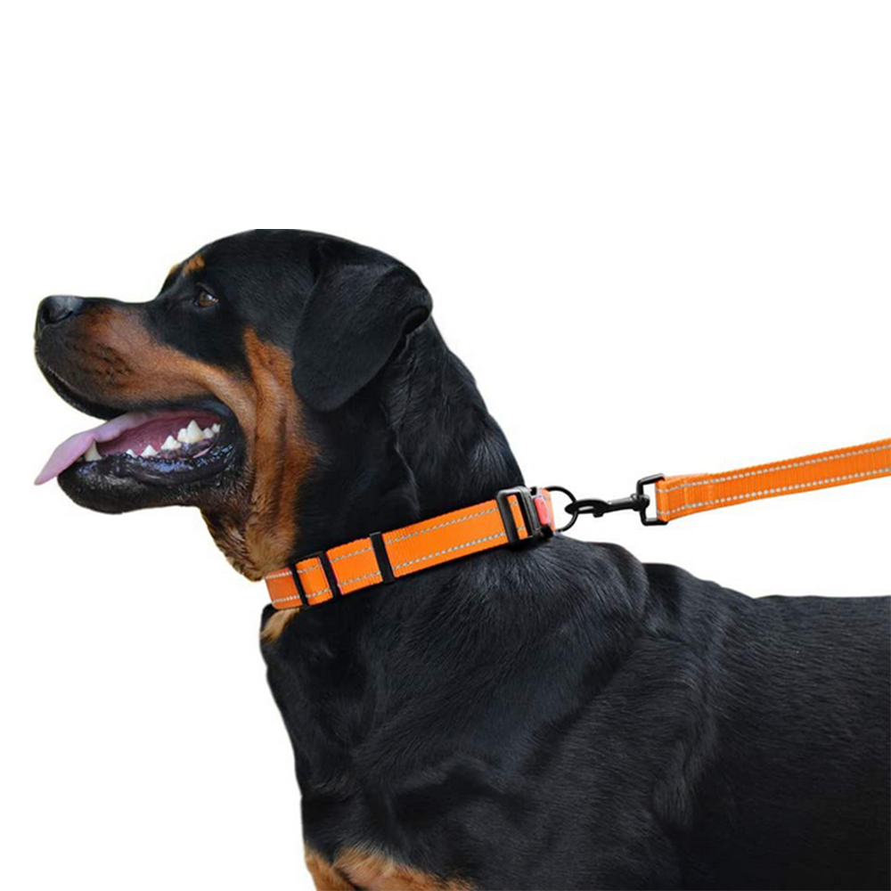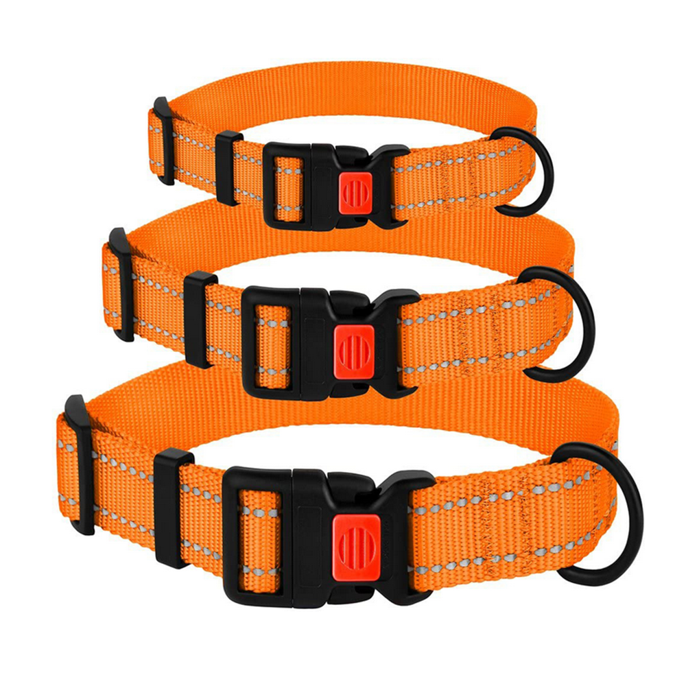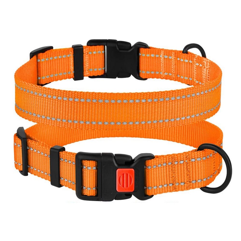 Reflective Dog Collar with Buckle Adjustable Safety Nylon Collars-Orange