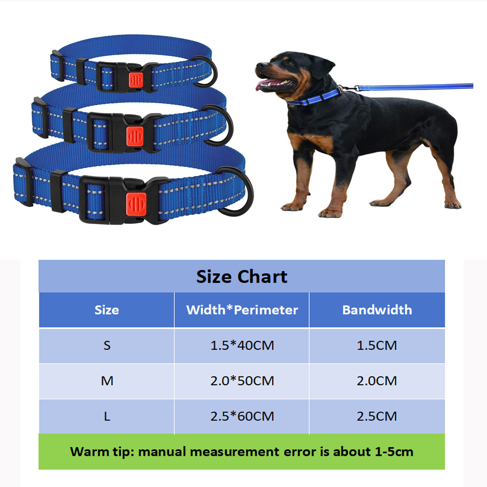 Reflective Dog Collar with Buckle Adjustable Safety Nylon Collars