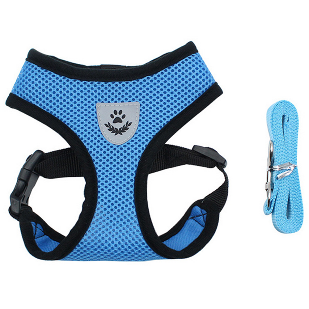 Reflective Dog Harness and Leash Set Harness Adjustable Puppy Harness-M-Blue