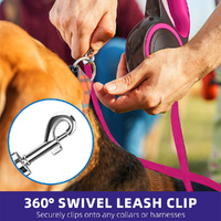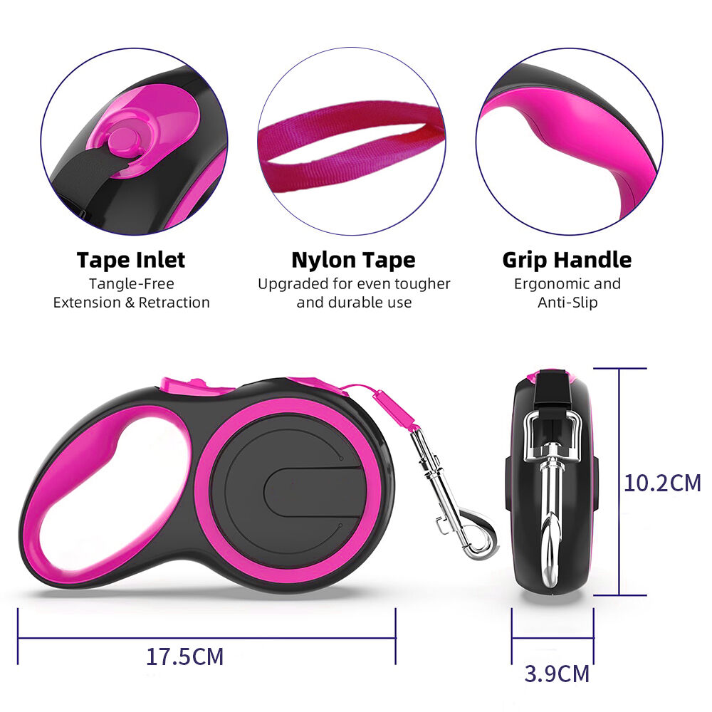 Retractable Dog Leash 5m Heavy Duty Dog Leash For Dogs Up To 20kg Strong Nylon Tape No Tangle-Rose Red