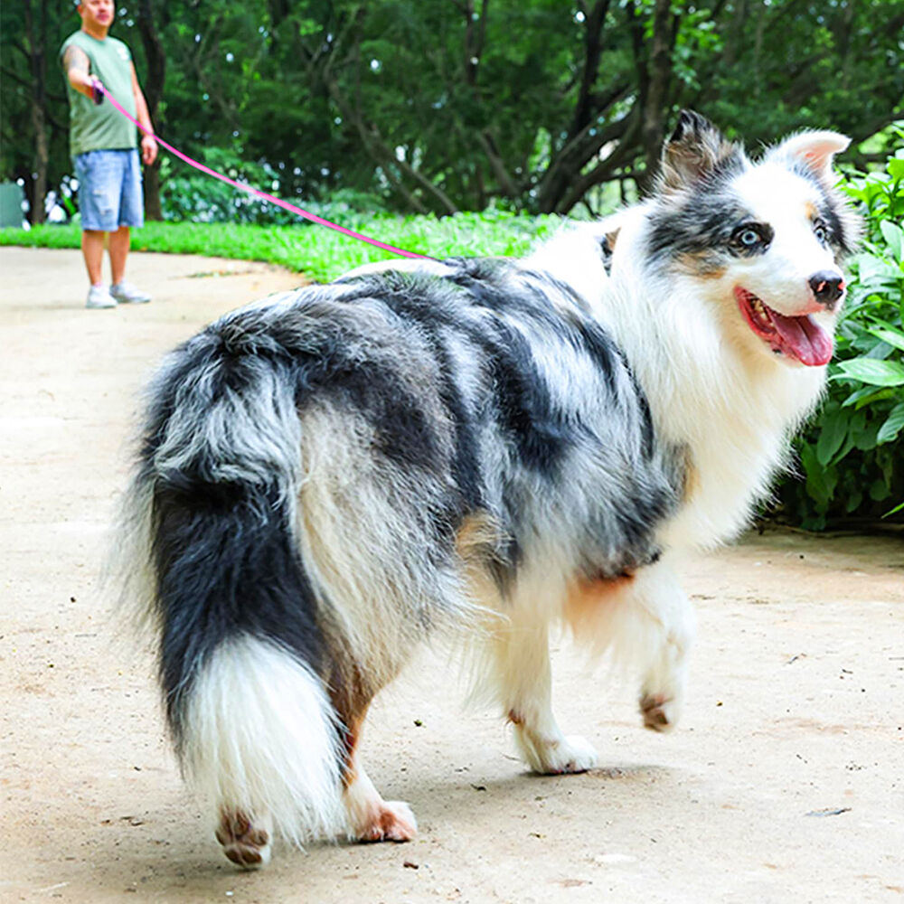 Tangle-free leash can quick lock and unlock button, easy roll-on and roll-off with your thumb only. Allows you to adjust the distance between you and your dogs at anytime, protect the safety of pets and other pedestrians