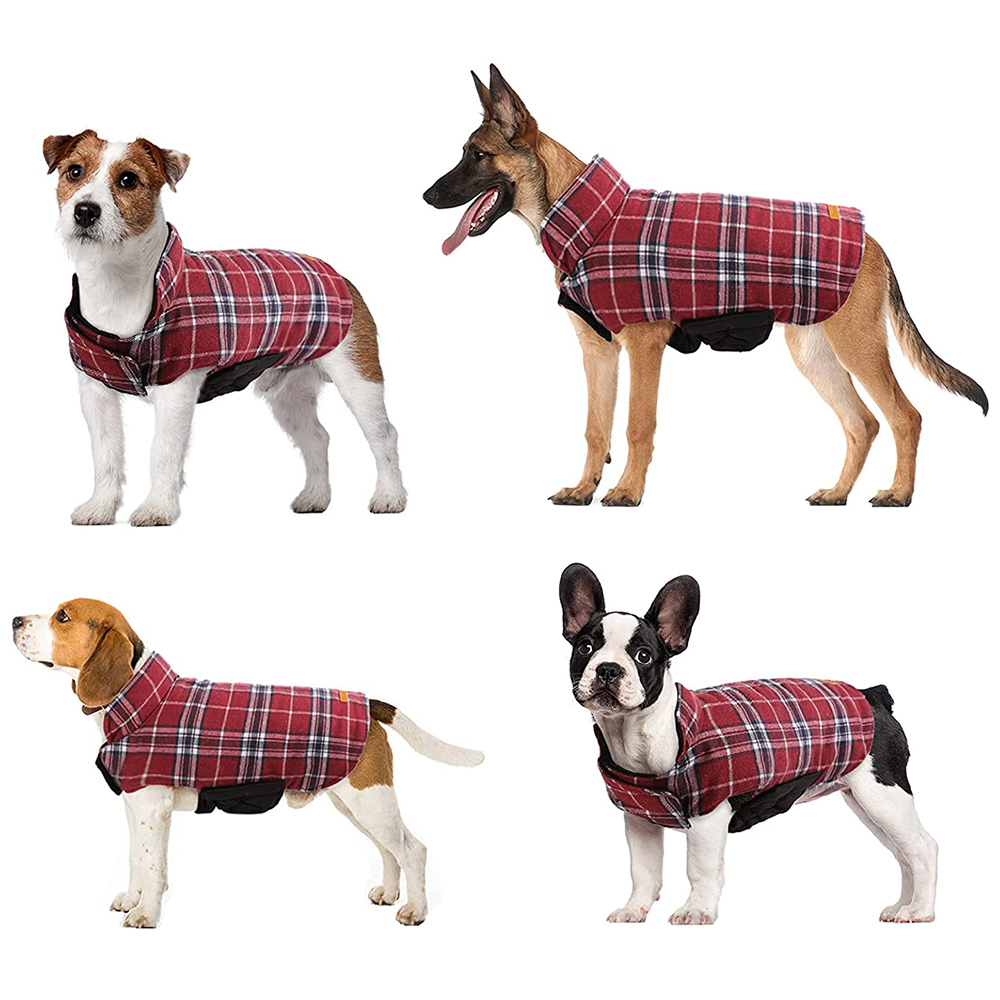 Reversible British Style Plaid Dog Sweaters Pets Waterproof Coats Jackets-XL-Red