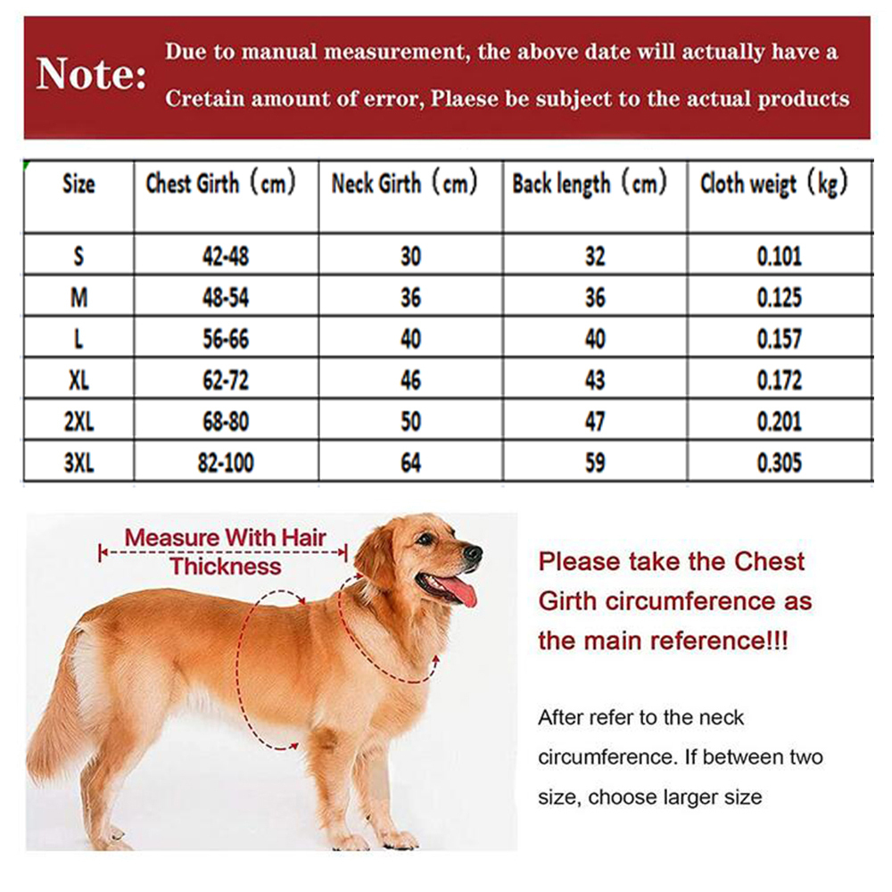 Note: Please take the Chest Girth circumference as the main reference!!! After refer to the neck circumference. If between two size, choose larger size.