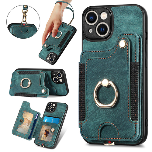 RFID Anti-Theft Brush Phone Leather Case Hanging Rope Ring Phone Case For iPhone