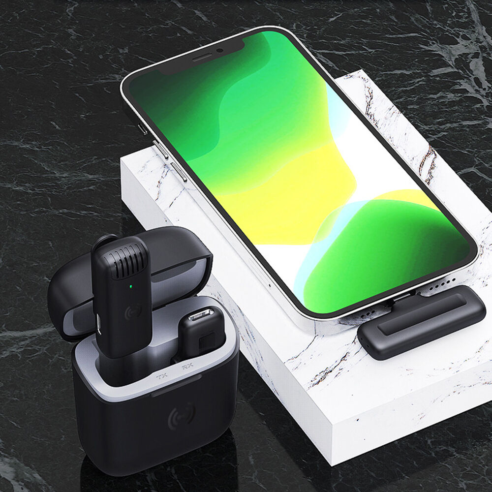 Wireless Lavalier Microphone for iPhone And iPad with Charging case-Black