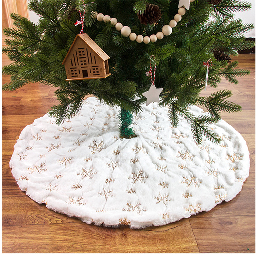 Christmas Tree Skirt Short Plush Tree Skirt Decoration with Sequin Snowflake Embroidery-Gold