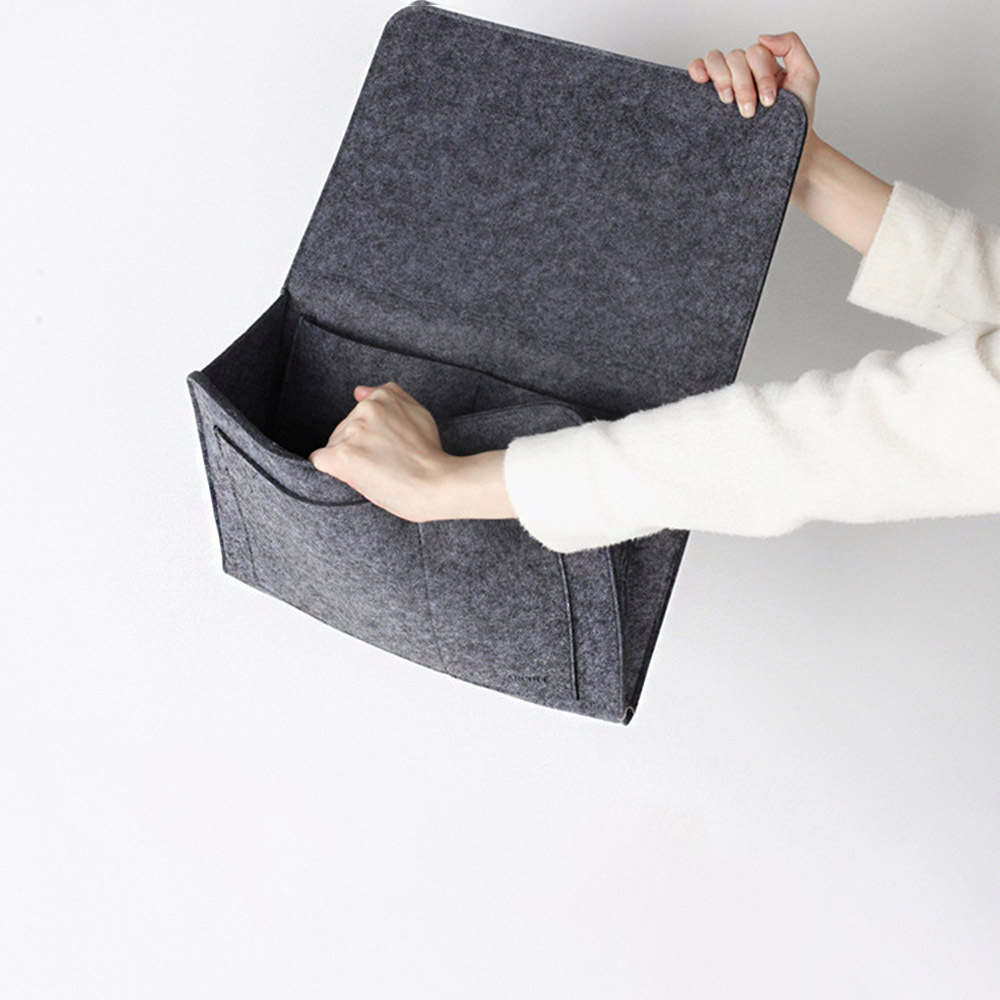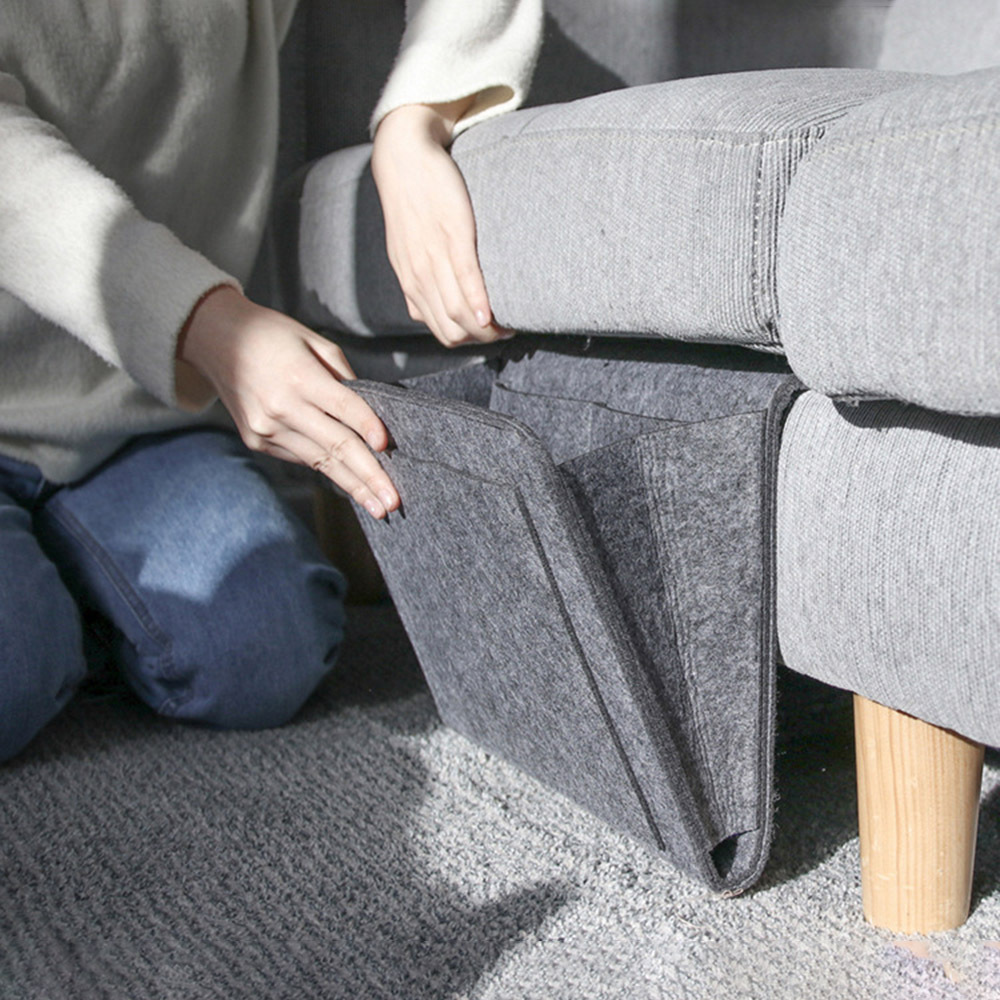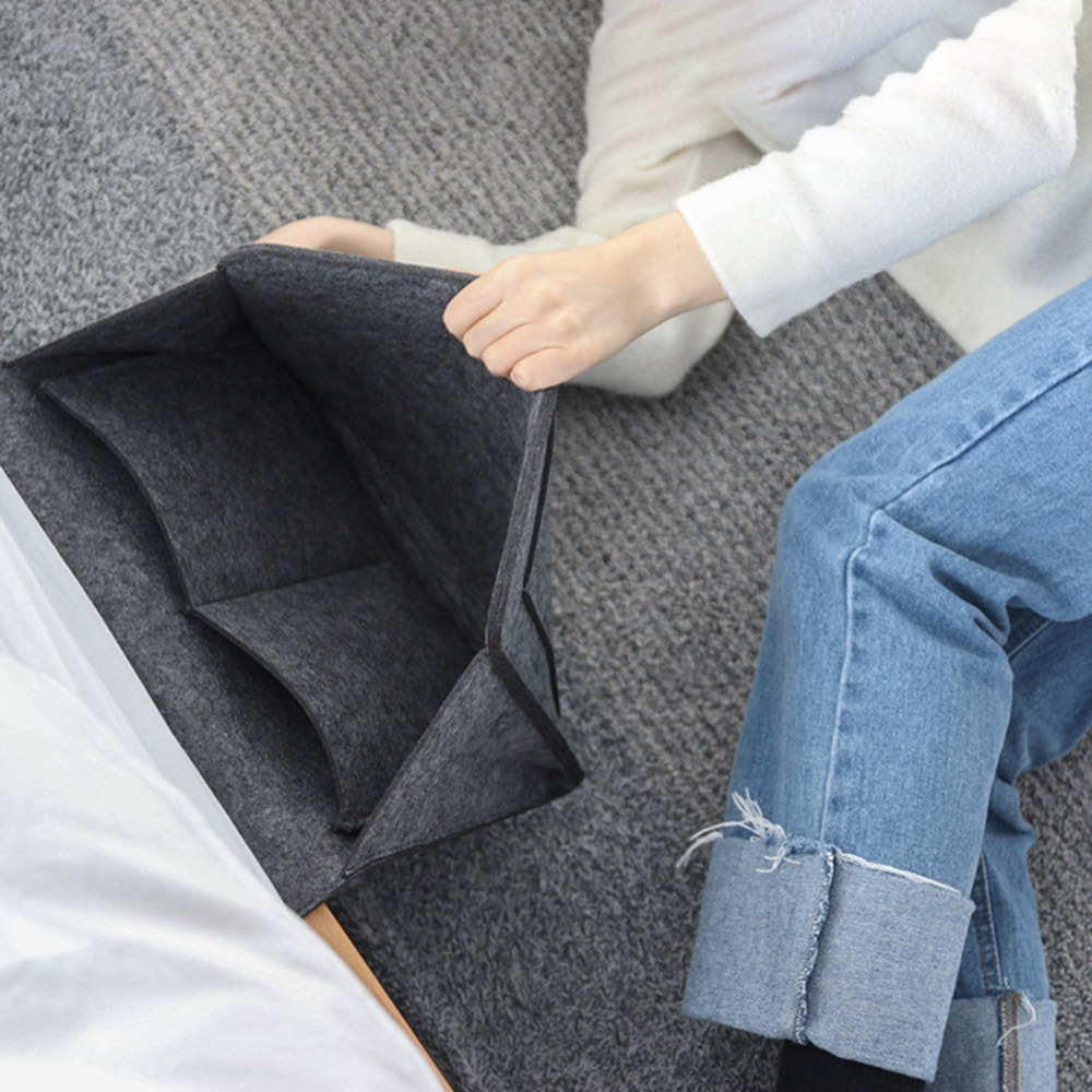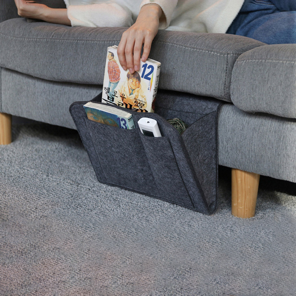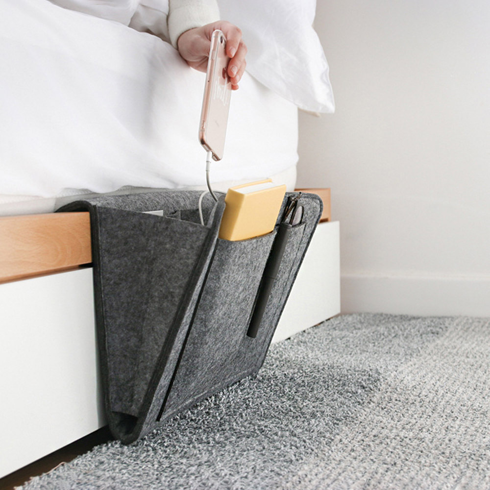 Soft Felt Bed Hanging Storage/Organizer with Pockets, Magazine Phone Tablet Tissue Holder-Dark Gray