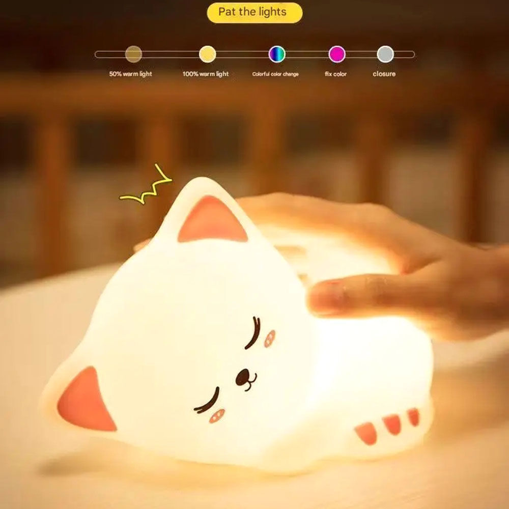 Soft Silicone Cat Light Seven Colors LED Night Lights USB Rechargeable Nightlight