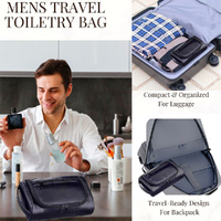 This toiletry bag with multiple zippered pockets and main section for organized storage of razors, cologne, skin care, and hygiene in this small travel bag for toiletries for men,offers ample room and no digging for all your travel necessities.