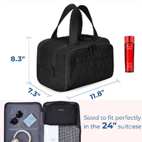 • Wide Opening: The wide opening design of the cosmetic bag allows for easy access to your items. You can conveniently place and retrieve your cosmetic bottles and toiletries without any hassle. The middle compartment is designed to hold upright bottles, preventing leaks and spills during transportation.