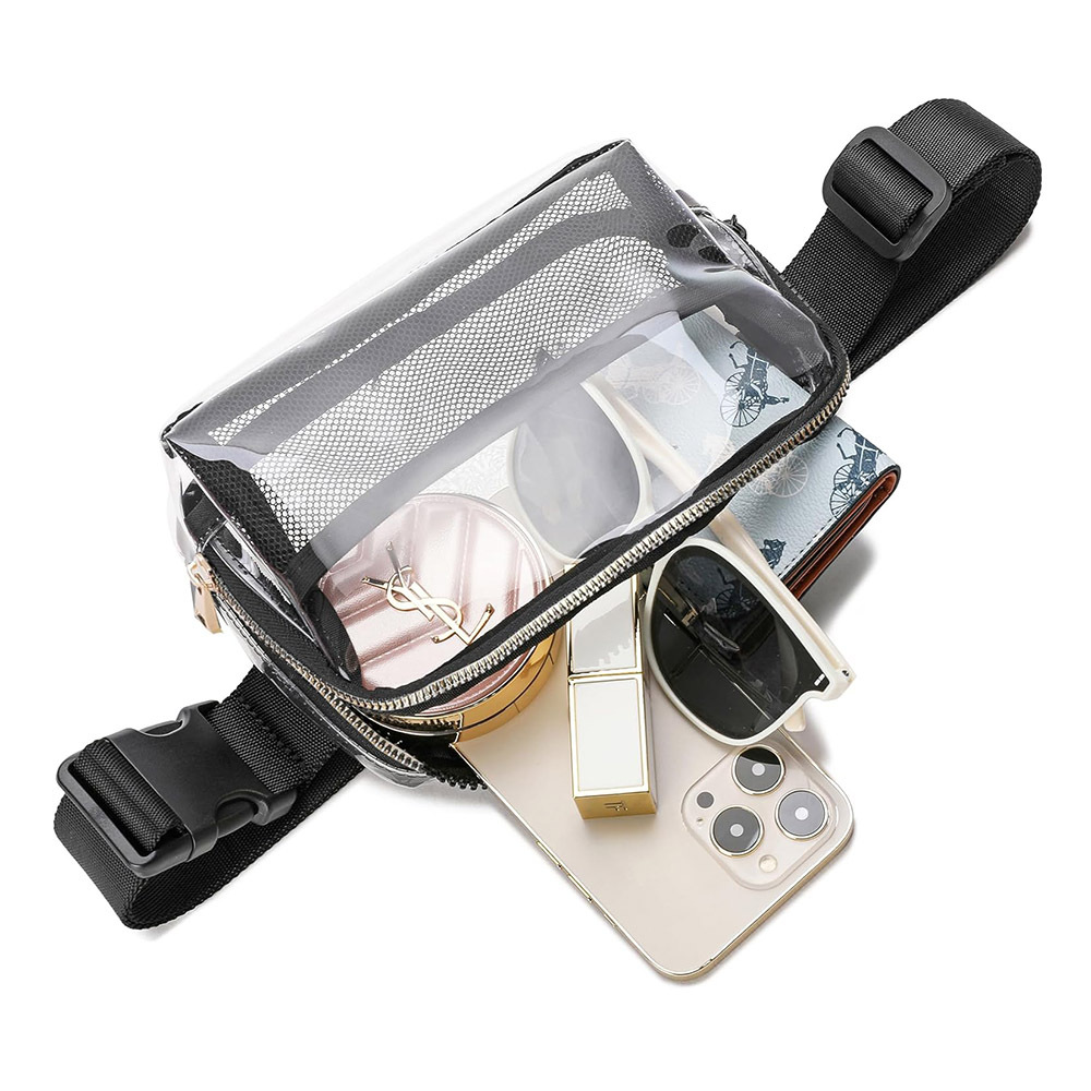 Transparent Waist Bag Nylon Waterproof Chest Bag Outdoor Sports Crossbody Bag-Black