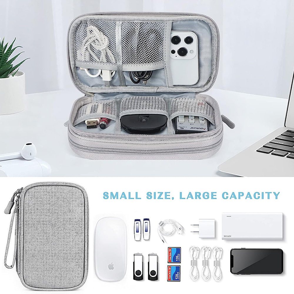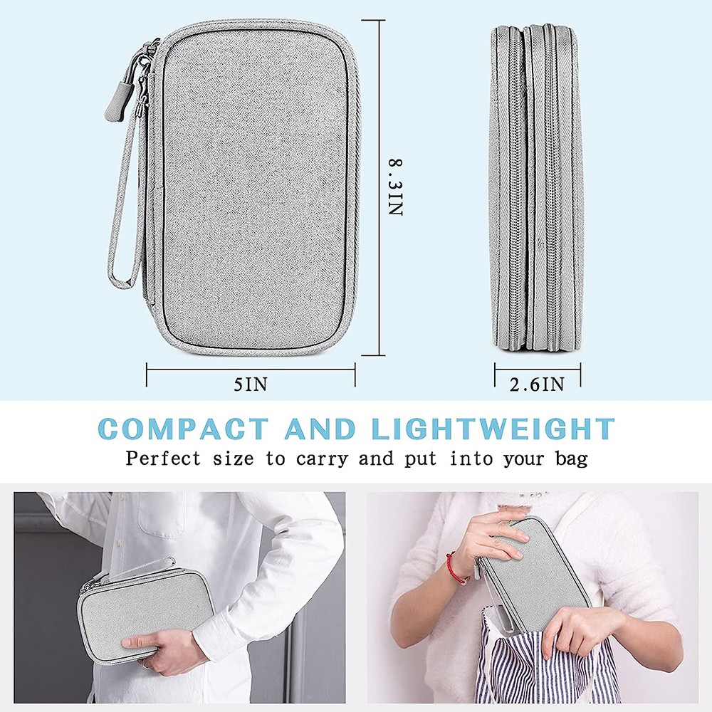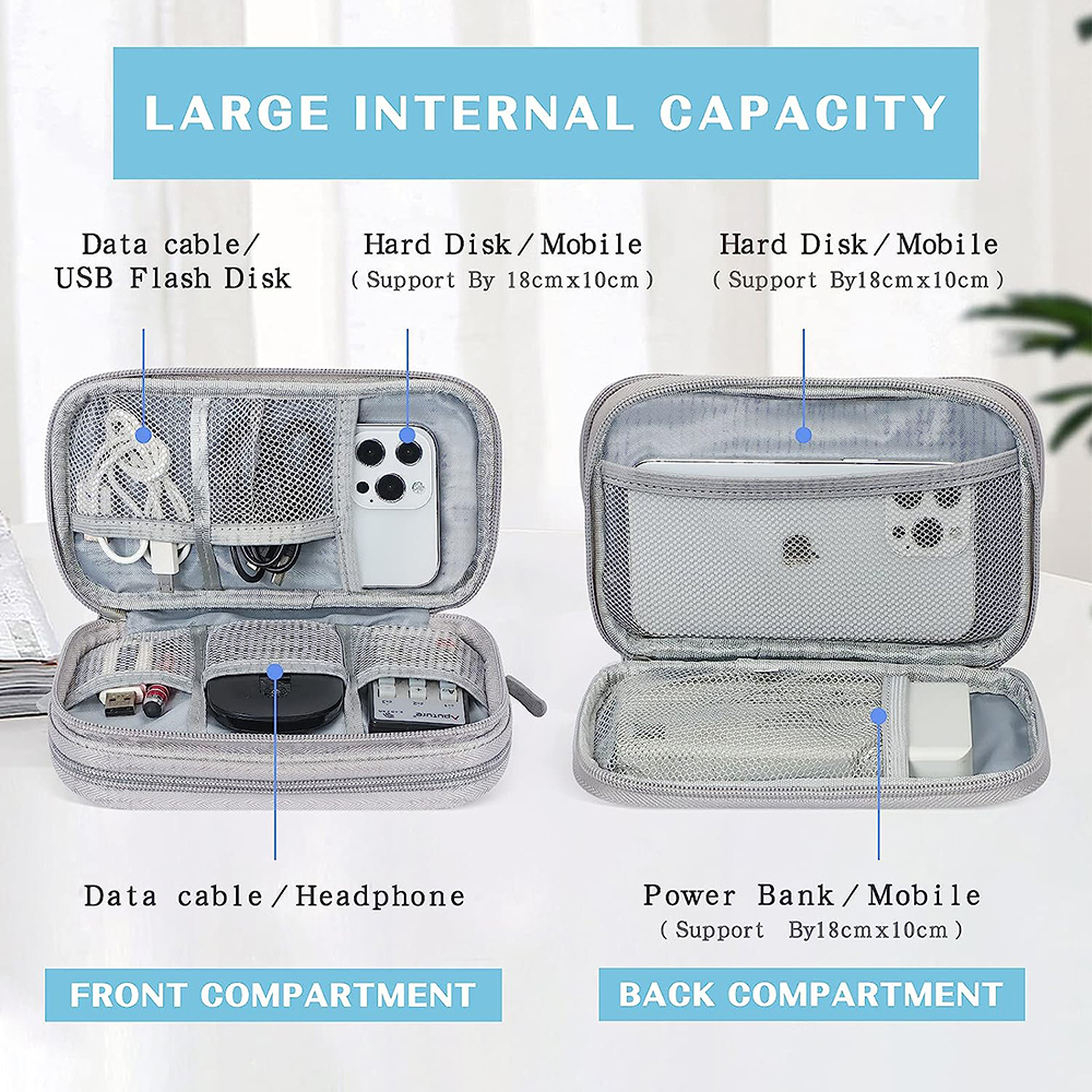• The electronics storage bag has 2 layers interior compartment with enough space to take in your cords, cables, USB drive, cellphone, charger, mouse, flash drive, and other accessories.