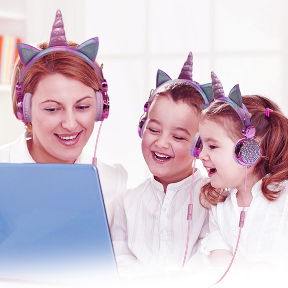 With lovely trendy and glitter unicorn design ,let your little one lose themselves in audio book and their favorite songs with these fun on-ear headphones,specifically designed for ages 3 and over.