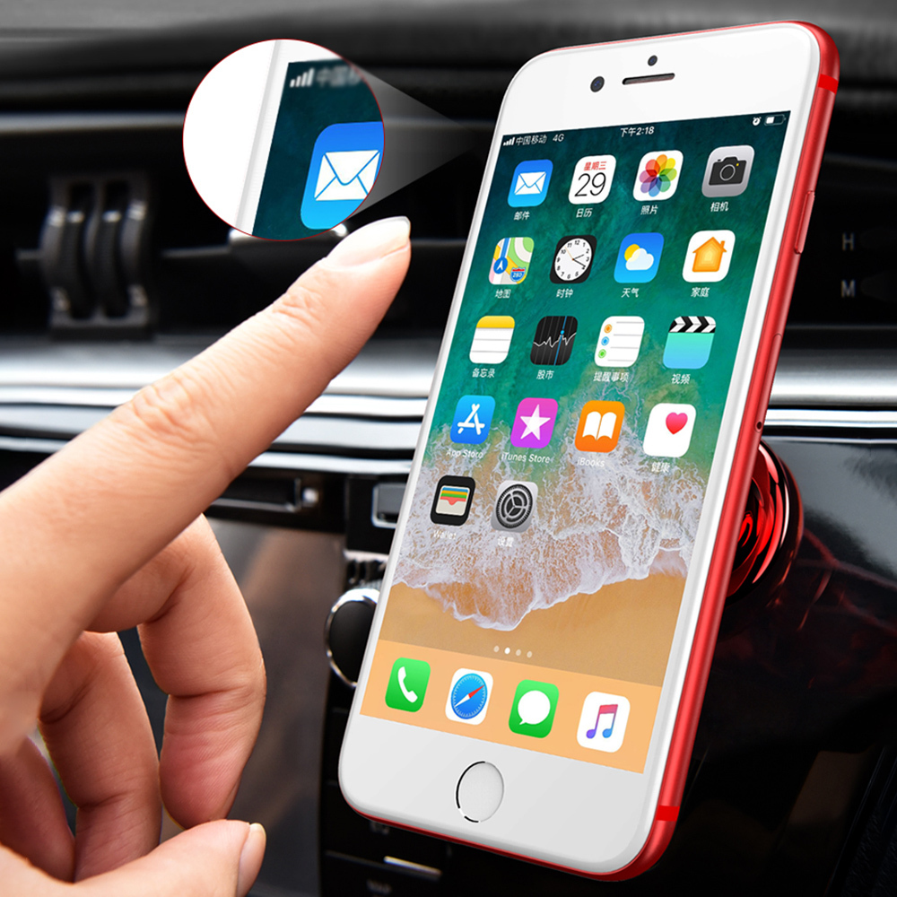 Featuring a strong magnet, this cell phone holder for cars does not block the view of the road, thanks to it's compact design