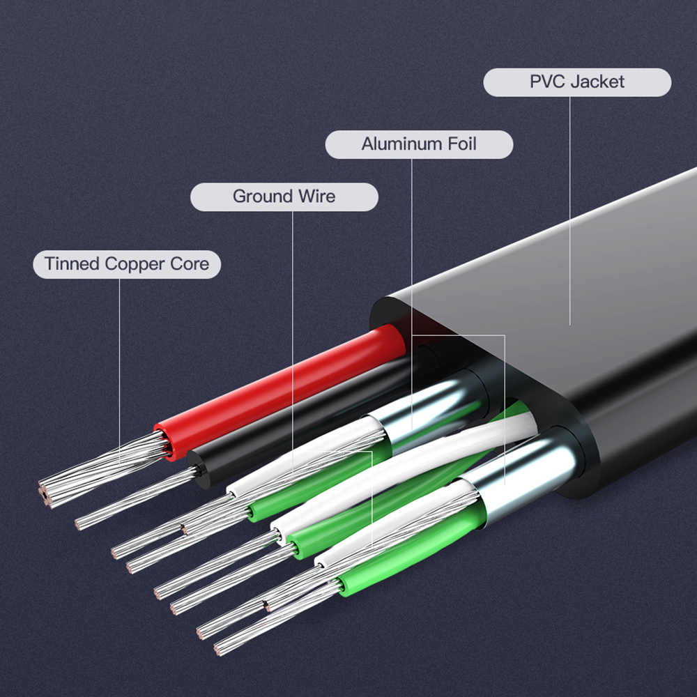 • Tinned copper core + aluminum foil shield