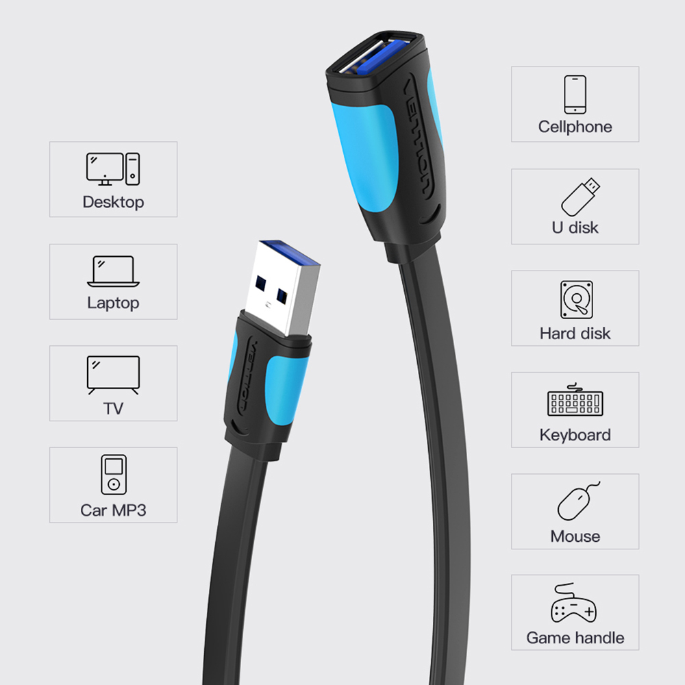 This USB 3.0 extension cable support the speed up to 5Gbps ,10 times faster than the USB 2.0 extension cable and transfer 1GB file in 5 seconds.Plug& Play on universal system, no driver required.