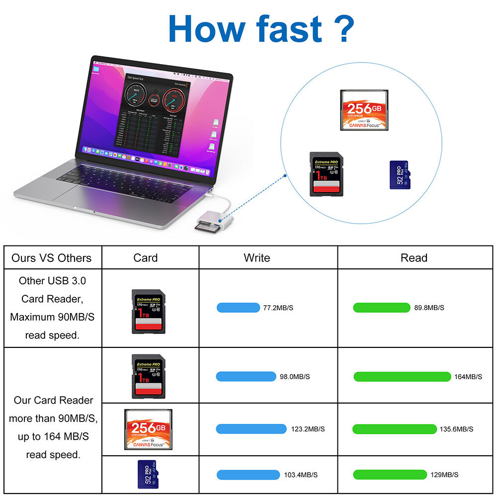 - High speed data transfer£¬the usb c sd card reader for iphone data transmission speed can reach 20mb/s-30mb/s, the usbc memory card reader support fast transfer standard photo formats, including jpeg, raw, along with sd and hd video formats, including h.264 and mpeg-4. The usb c sd card reader for iphone can easily and swiftly transfer your photos and videos to iphone, share images/videos on social media instantly.