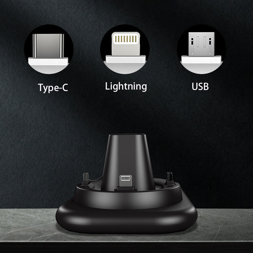 The wireless charger contains three interfaces of Lighting/micro/USB-C, rotated the charging dock to adapt to the different phone interfaces.